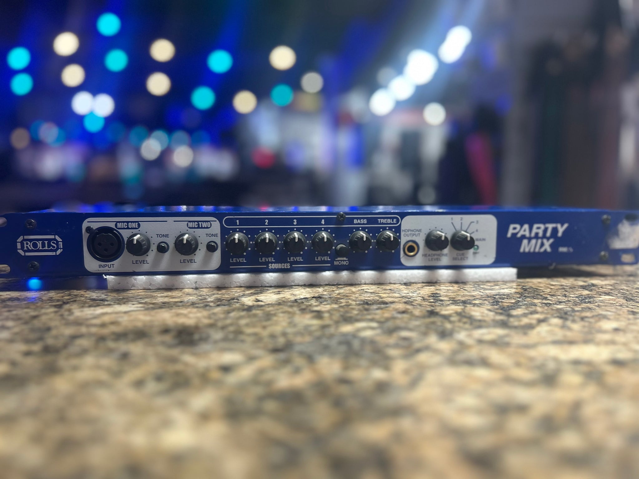 The RM75 Party Mix is a six channel, single rack space, electronic audio mixer with two microphone inputs and four stereo line inputs. The unit is ideal for installs such as small restaurants or night clubs where space is a consideration, without compromising audio quality.